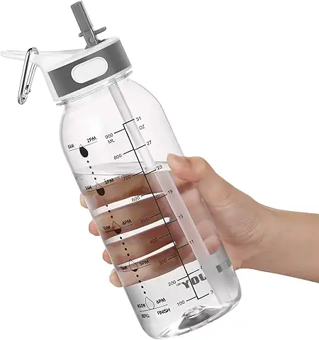 Hydratatie is essentieel voor de stofwisseling. Deze fles herinnert je eraan om de hele dag door water te drinken.